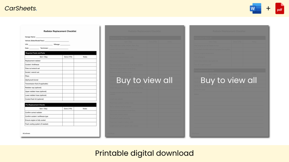 This ©CarSheets checklist is designed to streamline alternator replacement workflows. Developed for professional garages and service centers, each ©CarSheets checklist follows a consistent format to boost technician efficiency, minimize oversight, and ensure a standardized level of service across teams and locations.